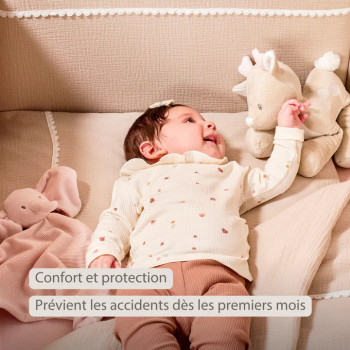 Créez un cocon de sécurité et de douceur pour votre bébé avec le tour de lit Nattou Swaddle couleur sable. Conçu pour s’adapter aux lits de 60 et 70 cm de large, il offre une protection optimale contre les chocs et pincements causés par les barreaux du lit.