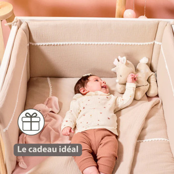 Ajoutez une touche de douceur et d’élégance intemporelle à la chambre de votre enfant avec le tour de lit Nattou Swaddle sable – l’accessoire parfait pour un sommeil serein et une déco harmonieuse.