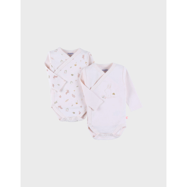 Lot de 2 bodies bébé manches longues – réalisés en jersey de coton doux certifié Oeko-Tex, ces bodies respectent la peau sensible de bébé et offrent un maximum de confort au quotidien. Leur ouverture croisée sur le devant permet un habillage facile, sans passer par-dessus la tête.