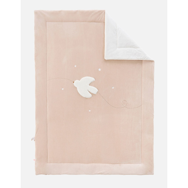 Offrez à votre bébé un cocon de douceur et de tendresse avec cette couverture en Veloudoux®, une matière incroyablement moelleuse et confortable. Associée au motif délicat de la colombe du bonheur, elle crée un univers apaisant, parfait pour les moments de repos ou de câlins partagés.