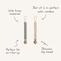 Ne perdez plus jamais la sucette préférée de votre bébé. Grâce à notre paire d’attache-suces en lin, gardez les indispensables de votre tout-petit à portée de main, en toute élégance et praticité.