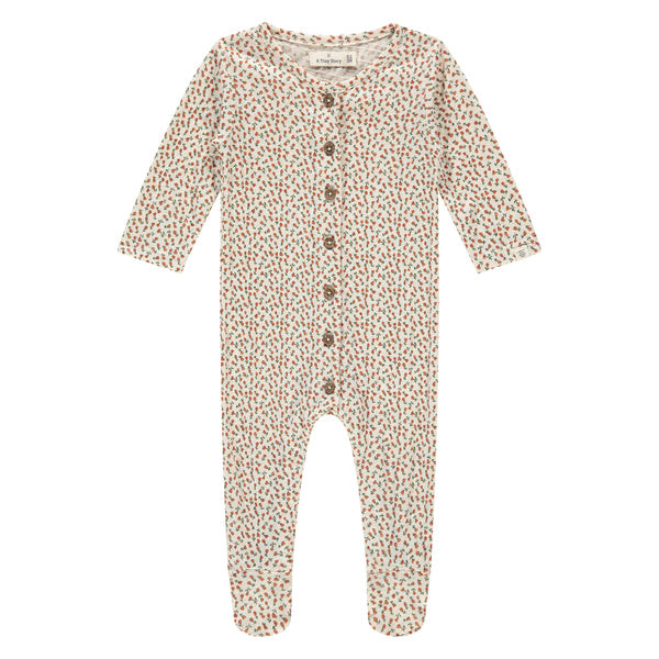 Le coloris Snow, sublimé par un imprimé délicat de roses rouges, apporte une touche élégante et tendre à ce vêtement. Sa coupe enveloppante offre une grande liberté de mouvement, tandis que les pieds intégrés maintiennent bébé bien au chaud.