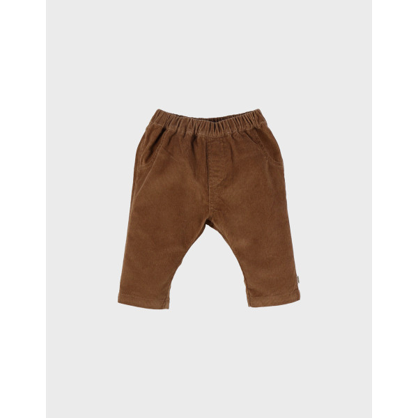 Conçu en velours côtelé doux, ce pantalon chocolat associe confort, chaleur et élégance. Idéal pour les saisons automne-hiver, il se distingue par ses finitions raffinées, dont deux poches cousues et deux boutons effet corne à l’arrière. Le bord élastiqué aux chevilles facilite l’enfilage et ajoute une touche actuelle au style.