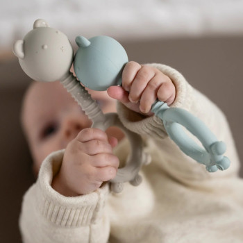 Laissez votre bébé découvrir un jouet aussi doux qu’utile avec notre hochet en forme d’ours, conçu pour répondre aux besoins des tout-petits pendant les poussées dentaires. Grâce à sa double fonction, il apaise et divertit en même temps.