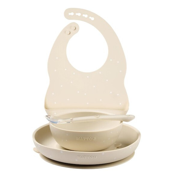Nattou set repas silicone avec bavoir 4 pièces argile/étoiles 874519