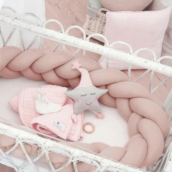 Le tour de parc/lit de 3m est doux et très facile à entretenir. Il se lave sans difficulté en machine à 30 °C (cycle délicat, sans essorage). Il conserve sa forme et ses couleurs, même après plusieurs lavages. Nos tresses sont faites à la main, et la taille peut varier légèrement en fonction du style de tressage, avec une longueur moyenne d'environ 300 cm.