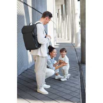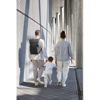 Le sac à dos à langer Slender Up est également conçu pour les voyages en famille, avec une boucle à l'arrière permettant de le fixer facilement à une valise à roulettes. Pour plus de sécurité, le modèle Slender Up Reflective dispose d’un matériau réfléchissant, assurant une meilleure visibilité dans l’obscurité.