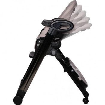 La chaise haute est facile à déplacer avec les 4 roues. De plus, vous pouvez la ranger de manière très compacte lorsque la chaise est pliée.