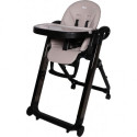 La chaise haute Royal est entièrement équipée : plateau amovible, dossier réglable, repose-pieds réglable et 4 roues.