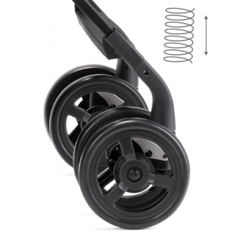 Quel que soit votre parcours, ses suspensions intégrales à l'avant et à l'arrière permettent un transport particulièrement fluide et confortable, même en cas de surface irrégulière. Une fois votre destination atteinte, le mécanisme de pliage à une seule main vous permet de ranger la poussette dans un espace réduit.