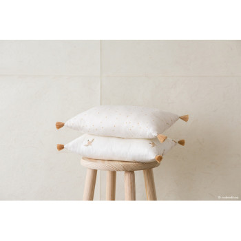 Apportez une touche de raffinement à la chambre de votre enfant ou à toute autre pièce de votre maison grâce à cet élégant coussin en double gaze de coton bio. Ses petits pompons ponctuent les 4 coins du coussin pour décorer le lit de votre enfant subtilement.