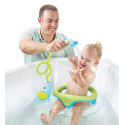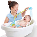 En appuyant sur le bouton de la pomme de douche, l'eau s'échappe à travers la trompe de l'éléphant et sort en jets doux. De cette façon, vous pouvez laver votre enfant de manière ludique sans qu'un jet d'eau trop puissant ne sorte.