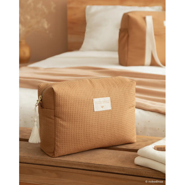 Large et pratique, la trousse de toilette Diva s'habille de nid d’abeille et d'une doublure intérieure imperméable. Mettez-y vos affaires de toilette ou autres accessoires de bébé.