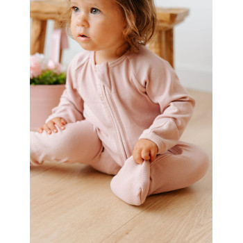Votre bébé se sentira à l'aise dans notre pyjama deux-en-un en bambou nervuré !