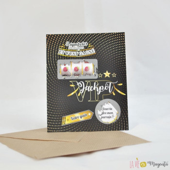 Voici une demande de parrain originale qui fera le bonheur du futur parrain... une carte qui met en scène 2 zones à gratter, afin de découvrir la fameuse demande de parrain ou annonce de grossesse.