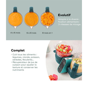 Conçu pour évoluer avec votre enfant, il vous suit bien au-delà des purées : découvrez le plaisir de cuisiner à la vapeur tout en préservant les nutriments essentiels pour toute la famille. Facile à utiliser, compact et au design soigné, il s'intègre parfaitement à votre cuisine.