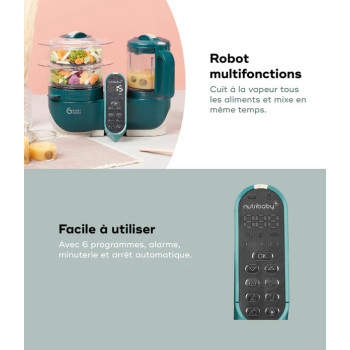 Parce que chaque moment compte dans la vie de votre bébé, le Nutribaby+ Plus de Babymoov devient rapidement un allié indispensable. Dès la naissance, il vous accompagne au quotidien pour chauffer les biberons, stériliser facilement et préparer les premiers repas maison, tout en douceur.