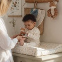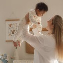 • Facilité d'habillage : La fermeture complète sur le devant avec des boutons imitation bois et les boutons-pression à l'entrejambe permettent un habillage facile et rapide, ainsi qu'un changement de couche sans tracas.