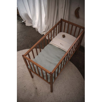 Cette couverture de berceau est doublée avec tissue en peluche chaud et doux et convient donc parfaitement pour que votre petit puisse dormir sous cette couverture pendant les mois les plus frais. Les couvertures de berceau Koeka sont fabriquées avec des matériaux de haute qualité et sont donc lavables à l'infini, ce qui vous permet de les utiliser pendant des années. La couverture est disponible en plusieurs couleurs tendance, il y en a donc certainement une qui convient à votre crèche. Outre le berceau, cette couverture peut également être utilisée sur la route dans la poussette ou le siège auto 0+. Et votre bébé fait-il la sieste dans le parc ou dans la balancelle ? C'est aussi une belle couverture à mettre sur votre bébé.
