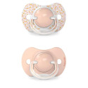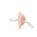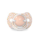La forme de la tétine présente plusieurs avantages. Une tétine en forme de mamelon imite la forme du sein, ce qui rend cette tétine idéale à utiliser en combinaison avec l’allaitement. Le bouclier est également doté de trous de ventilation, qui empêchent l’irritation de la peau autour de la bouche de votre enfant. Les sucettes conviennent aux enfants de 6 à 18 mois.