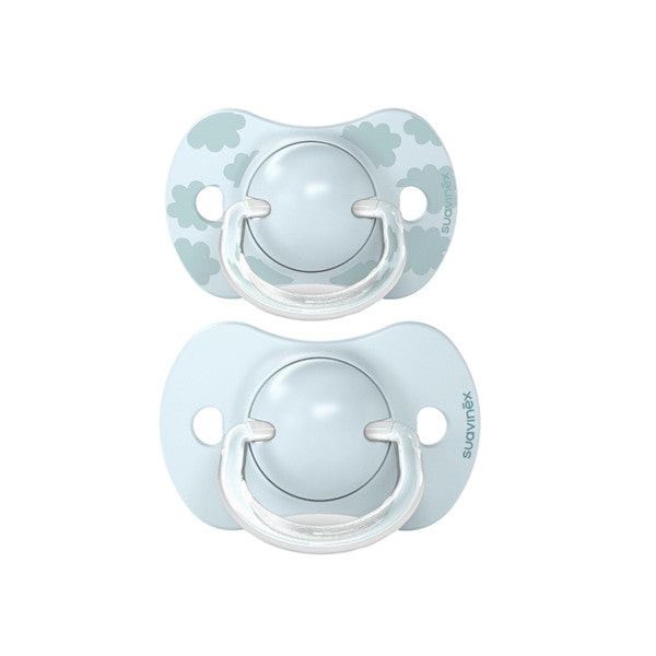 Quelle jolie tétine de la collection Dreams de Suavinex ! Une tétine a un design mignon avec des nuages bleus, l’autre tétine est de couleur bleue. La tétine est réversible.