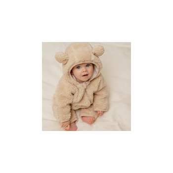 Cette combi en teddy de couleur sable garde votre petit lapin au chaud et confortable; enveloppé et prêt à découvrir le monde dans une tenue tout-en-un.