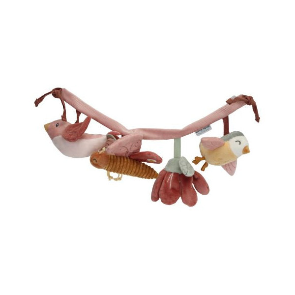 Quatre personnages attachants l'accompagnent dans ses découvertes : Lily le papillon, Olivia l'oiseau, Abby le moineau… et un adorable compagnon mystère. Chacun stimule l'envie de toucher, de suivre du regard, de manipuler, pour favoriser la coordination œil-main dès les premiers mois.