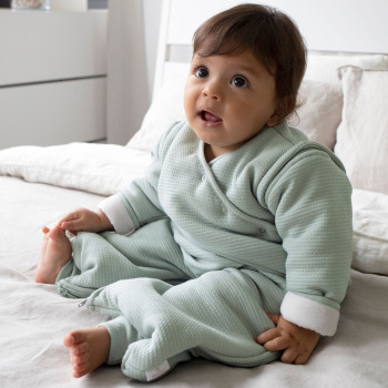 Tendrement ouatiné et doublé de coton organique, le gaufré de coton biolgique procure une agréable chaleur idéale pour une température de chambre entre 16 et 19°C.