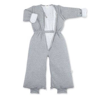 Grâce au système modulable des fermetures éclairs, le bas du sac se transforme rapidement avec ou sans les jambes séparées. Cette fonctionnalité est indispensable afin de faire passer les ceintures et fermer correctement le harnais de sécurité au plus près du corps de bébé.