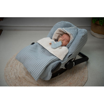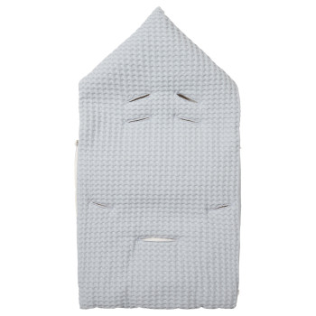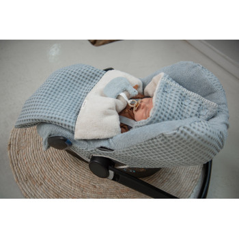 Cette chancelière doublée avec du tissus en peluche s'installe dans un siège auto 0+ avec harnais à trois ou cinq points et garde votre petit bien au chaud lorsque vous êtes en déplacement pendant les mois les plus froids.