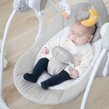 La balancelle Confort se règle sur plusieurs positions, dispose d'une minuterie (8 / 15 ou 30 min) et de 5 vitesses de balancement. Que ce soit pour l'endormir, l'apaiser ou l'éveiller, vous trouvez le rythme et la position qui convient le mieux à votre Bout'choux.