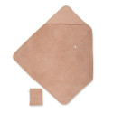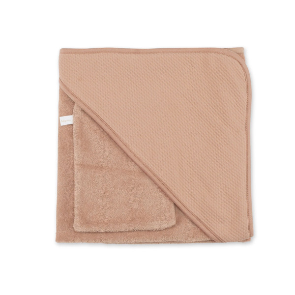 Composée d’un capuchon qui permet de garder la tête bien au chaud et d’un gant de toilette assorti, la serviette de bain est un article indispensable dès la naissance.