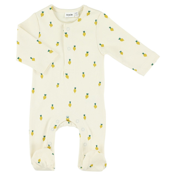Grenouillères pieds Trixie en collection Moonstone. Un modèle hyper mignon avec lequel votre bébé peut aussi bien dormir que ramper ou jouer. Il est en 100% en cotton biologique; il garde une belle tenue même après de nombreux lavages.