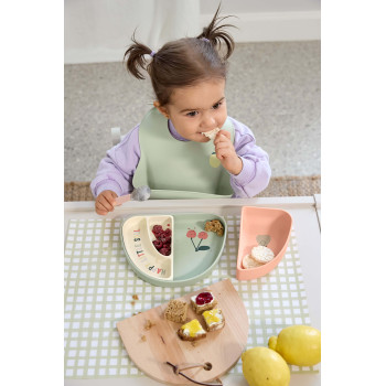 Des fruits rigolos et un grand plaisir à chaque repas ! Le set de vaisselle LÄSSIG en silicone en forme d'arc-en-ciel est le choix parfait pour éveiller l'imagination des petits tout en rendant les repas encore plus amusants. Ce set coloré et fonctionnel divisé en trois compartiments séparables offre de nombreuses possibilités créatives : mélanger, trier, tremper ou manger à la cuillère, les enfants vont adorer !