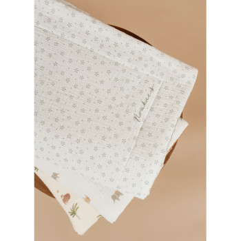 Offrez à votre bébé des moments de confort et de chaleur avec cette couverture en mousseline de coton, idéale pour la mi-saison. Son imprimé blanc floral et kaki lui apporte une touche élégante et naturelle, tandis que sa texture aérienne protège bébé des courants d'air sans l'alourdir.