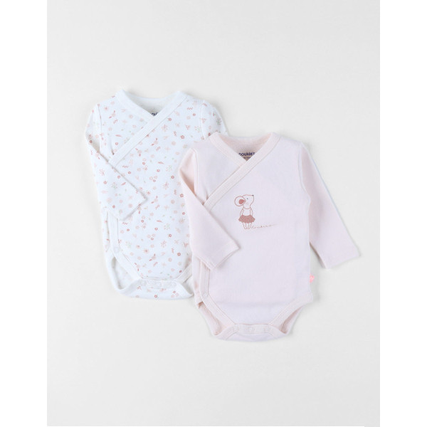Ces deux bodys à manches courtes, confectionnés en jersey certifié Oeko-Tex, sont parfaits pour la peau délicate des tout-petits. Grâce à leur ouverture croisée, ils s’enfilent sans passer par la tête, offrant un habillage tout en douceur. Leur matière respirante et extensible garantit un confort optimal, tout au long de la journée.