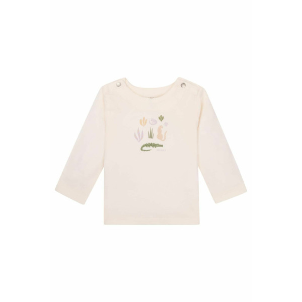 Parfait pour le quotidien, ce T-shirt à manches longues en coton biologique est un essentiel de la garde-robe de votre bébé. Unisexe et polyvalent, il s’associe facilement avec toutes les tenues grâce à sa couleur intemporelle et son motif discret.