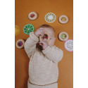 Notre nouveau jouet sensoriel est une véritable gourmandise pour les petits ! Ce hochet en bois en forme de beignet est conçu pour être manipulé confortablement par les petites mains curieuses. À l’intérieur, des formes de fruits et légumes cachent un son irrésistible, typique de notre marque, qui captera toute l’attention de votre bébé à chaque secousse.