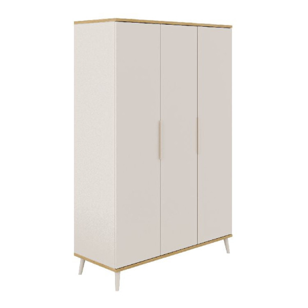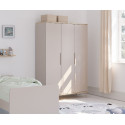 Cette armoire se distingue par sa finition beige cashmere avec imitation chêne montana, créant une atmosphère à la fois apaisante et intemporelle. La combinaison de couleurs avec des accents en bois de chêne apporte une ambiance chaleureuse, idéale pour une chambre d’enfant ou de junior.
