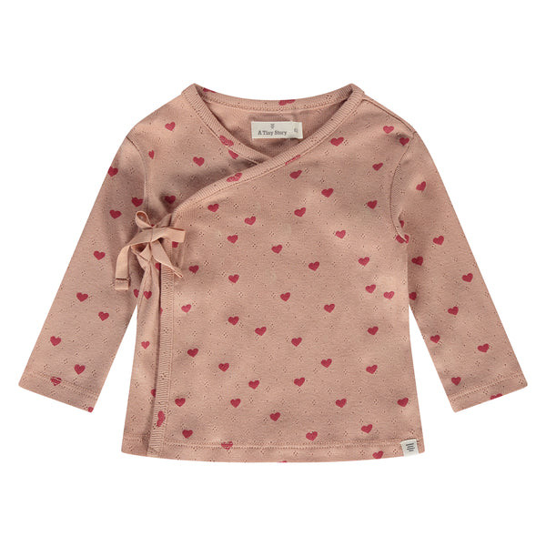 Offrez à votre bébé un vêtement aussi mignon qu'adorable avec le t-shirt bébé à manches longues Coeur Croisé Dusty Coral de A Tiny Story. Parce que chaque petit cœur mérite d'être entouré d'amour !