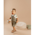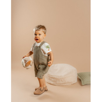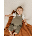 Offrez à votre bébé une tenue à la fois adorable et pratique avec cette salopette ajustable en mousseline de coton kaki. Agrémentée de charmants boutons en noix de coco et ornée d'une broderie NKS sur la poche, cette salopette est associée à un t-shirt coordonné pour une tenue complète et stylée. Idéale pour les sorties de bébé, elle combine élégance et confort tout en facilitant l'habillage.