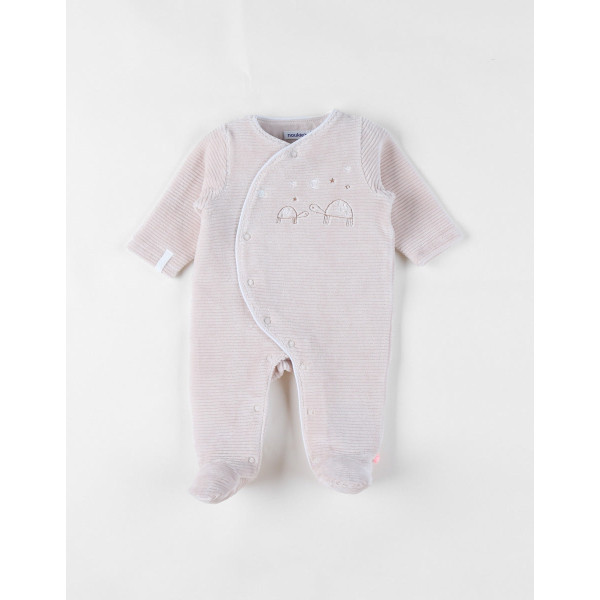 Le pyjama en velours côtelé est soigneusement confectionné avec une application rebrodée représentant maman et bébé tortue , et une pression personnalisée ornée du joli de Nouky . Ce pyjama allie douceur , élégance et confort pour bébé !