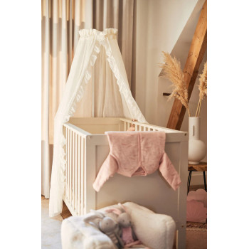 Transformez le berceau de votre bébé en un véritable cocon de douceur et de sécurité avec notre ciel de lit à volants. Non seulement il apportera une touche élégante à la chambre, mais il créera également une atmosphère chaleureuse et rassurante pour votre petit. Une fois installé, vous verrez : la chambre de bébé sera instantanément terminée !