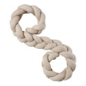 Le tour de parc/lit de 3m est doux et très facile à entretenir. Il se lave sans difficulté en machine à 30 °C (cycle délicat, sans essorage). Il conserve sa forme et ses couleurs, même après plusieurs lavages. Nos tresses sont faites à la main, et la taille peut varier légèrement en fonction du style de tressage, avec une longueur moyenne d'environ 300 cm.