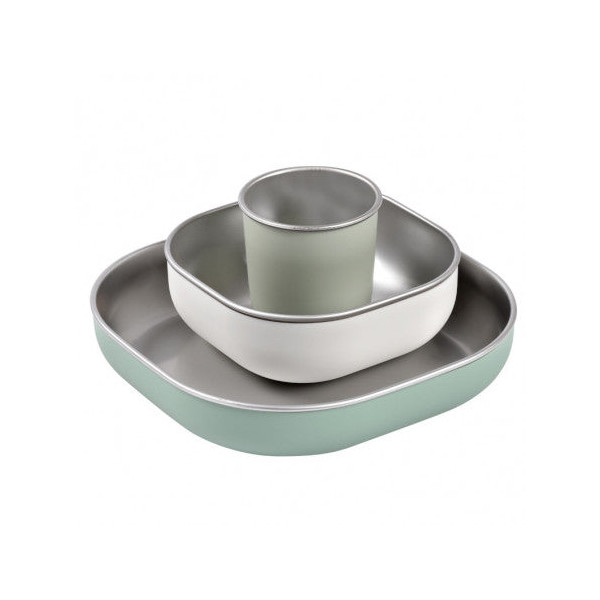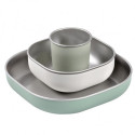 set complet : une assiette, un bol et un petit verre ergonomiques pour accompagner toutes les étapes des repas.
