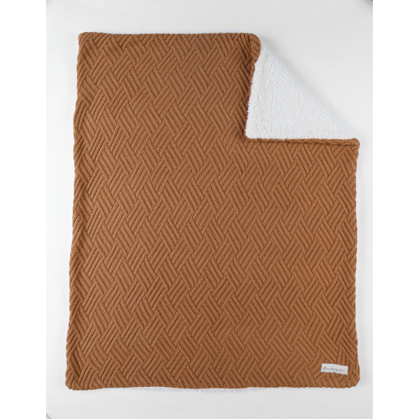 Doublée de Sherpa pour une chaleur supplémentaire, la couverture en tricot bio de couleur caramel (75x100cm) est un indispensable. Sa texture douce et son design élégant en font un accessoire essentiel pour les moments de détente et de repos pour votre petit.