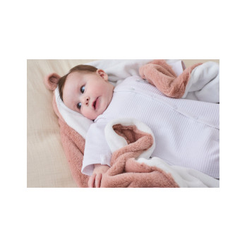 Design bicolore élégant : Arborant une teinte rose poudré délicate associée à un écru apaisant, cette couverture présente un design chic et intemporel qui s'intègre parfaitement à toute garde-robe de bébé.