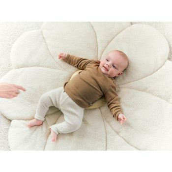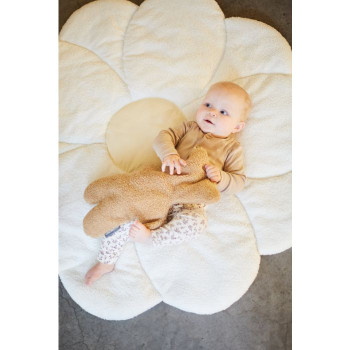 Si vous êtes à la recherche d'un tapis de jeu tendance, notre tapis de jeu Flower est parfait pour vous ! Le tissu doux est parfait pour que votre enfant puisse jouer et découvrir le monde. Il a la forme d'une fleur, les pétales sont en blanc cassé et le centre est jaune. Ce tapis de jeu fait partie de notre collection de fleurs et se marie parfaitement avec tous les autres articles tels qu'un pouf, une étagère murale et de multiples textiles. Tout ce dont vous avez besoin pour décorer joliment votre chambre d'enfant ou votre salon.