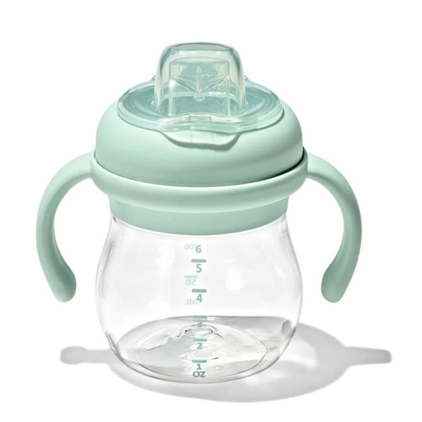 Ce gobelet a un design unique : le bec souple à la forme d'une amande. De cette façon, le bec s'ouvre immédiatement par le toucher des lèvres du bébé.