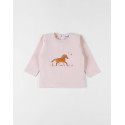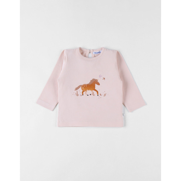 Confectionné avec soin en jersey, ce t-shirt rose pâle garantit un confort optimal tout au long de la journée. Ornée d'une charmante application d'un cheval, cette pièce ajoute une touche de fantaisie à son look. On craque pour les fronces sur les épaules !